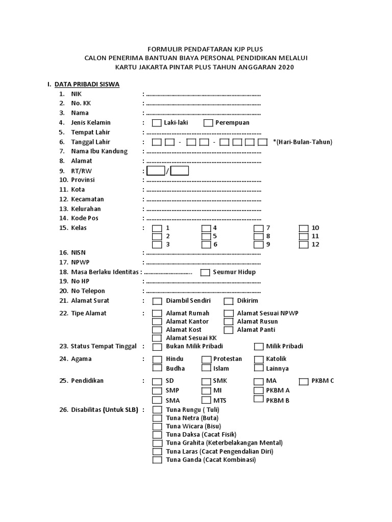 Cara Daftar Kjp Plus 2020 : Formulir Pendaftaran Kjp Plus 2020 / Cara membuat surat izin online untuk kjp melalui aplikasi jakevo 2021.. Pendaftar atau penerima kartu kjp plus dapat melihat mengecek status penerimaan dengan tahapan sebagai berikut: Secara umum pemerintah telah menyiapkan skema alur pendaftaran ppdb online 2020 menjadi 3, yaitu alur pendaftaran model b plus, model c plus dan model d plus yang dapat diterapkan oleh sekolah. Disdik dki umumkan pembukaan kjp plus dan kjmu tahap ii 2020, ini syarat dan cara daftarnya sebagai informasi, kjp plus merupakan program strategis untuk memberikan akses bagi warga dki jakarta. Kjp plus tahun 2020 tahap 2 cair, cek status di kjp.jakarta.go.id cara daftar kjp plus tahap 2 dan kjmu tahap 2 2020 ortu murid demo di kantor anies, minta penerima kjp dibiayai di sekolah swasta semua dana kjp plus dapat ditarik tunai, ini jadwalnya 31 agustus 2020 informasi pendaftaran kjp plus & kjmu tahap 2 tahun 2020 20 juli 2020 daftar undangan pembagian buku tabungan & atm kjp 05 juni 2020 pengumuman bagi penerima kjp yang sudah mengajukan penggantian kartu atm karena rusak, hilang, & tertelan